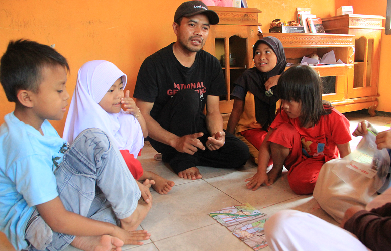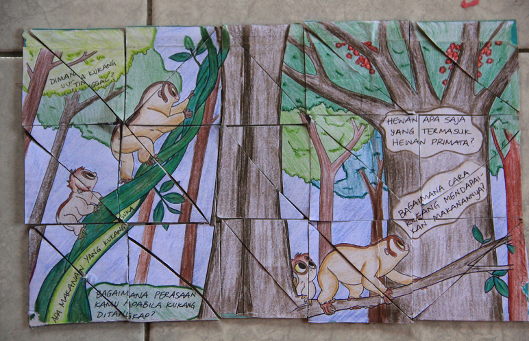 As the children that came to nature club are different ages they were divided in three groups according their age and different puzzles were assigned to them. Sometimes the puzzle was a challenge even for the volunteers and Pak Dendi! But finally, with a lot of enthusiasm and a bit of effort, all the puzzles were solved and the questions about lorises were answered.