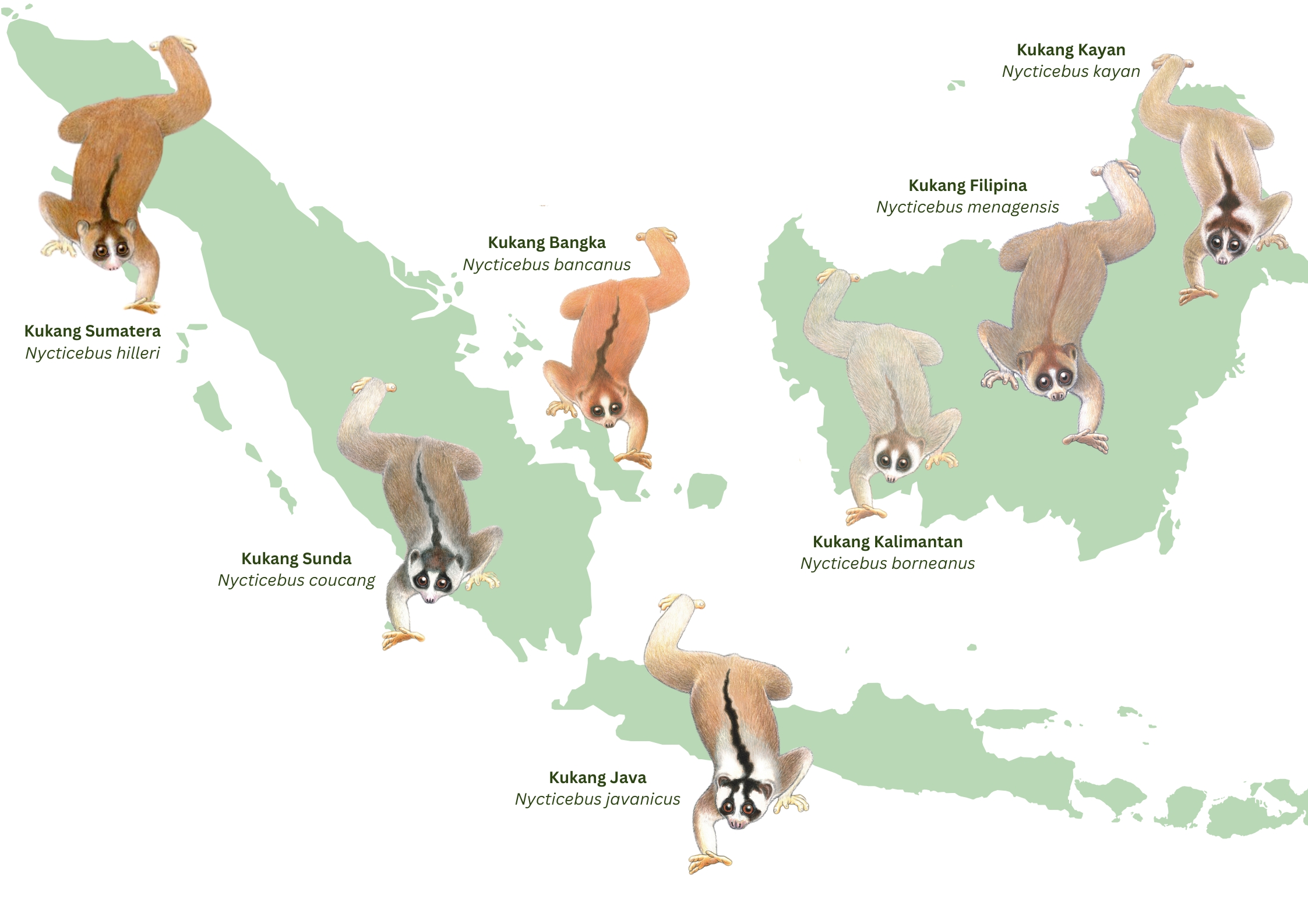 Kukang dengan genus Nycticebus merupakan bagian dari famili Lorisidae yang sebarannya berada di Asia Tenggara. Genus Nycticebus tersebar dari Burma, China, Kamboja, India, Thailand, Singapore, Vietnam, Malaysia dan juga Indonesia.