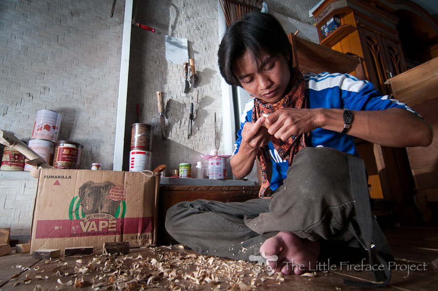 Vanish.’ A carver by profession, Amank typically makes cabinets, floors, and even carves beautiful knife handles for the villagers’ machetes, but he is now producing small loris art.