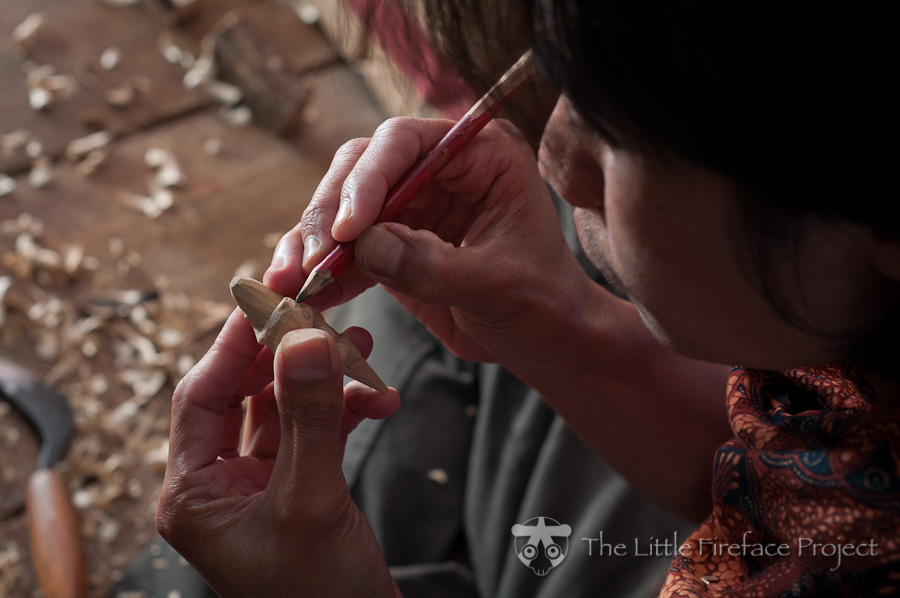 Vanish.’ A carver by profession, Amank typically makes cabinets, floors, and even carves beautiful knife handles for the villagers’ machetes, but he is now producing small loris art.