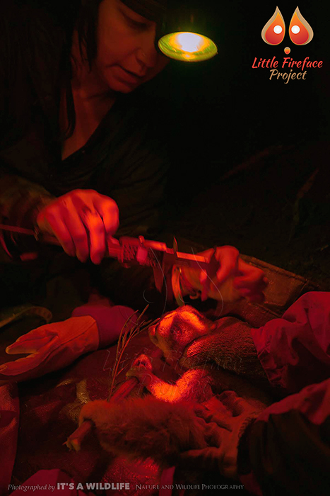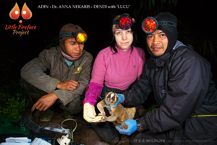 Next in line was our lovely loris Lucu. Lucu already had a collar but was collared quite young and therefore we wanted to make sure that she was doing okay. For months we had been wondering whether Lucu, meaning “cute” in Indonesian, was a boy or a girl and Anna brought some light to the situation. Lucu is a girl!!! She was very easy to catch and the entire process took less than 30 minutes. She was released back onto a nice tree close to where she had been caught and sprinted off into the distance. We checked on her an hour later and she was resting in the bamboo and grooming herself. When we looked to the side we saw an additional 2 uncollared lorises within 10m of her! What a social lady she is!