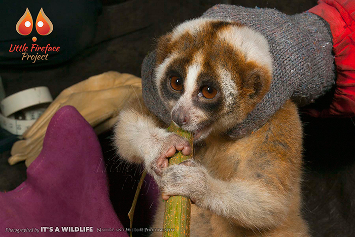 This week has been a busy week of catching and collaring lorises at the field site. First up was Sibau’s daughter Galaksi. It took trackers Adin and Dendi almost an hour to catch her, with Dendi hanging in the bamboo over the path and sliding down tree trunks like it was a fireman’s pole. Once caught, we placed Galaksi in a bag to keep her calm whilst we layed out all the materials needed to take her measurements and collect samples. We weighed her, collared her, and collected faecal and venom samples. What a beautiful loris she was, fit and healthy! She had very dark eye patches and a lovely dorsal stripe!
