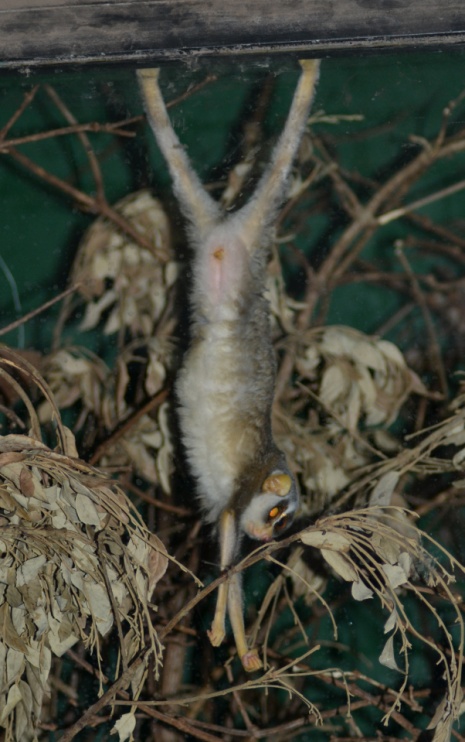 Slender lorises are amazingly acrobatic and use their strong grip and flexible bodies to perform extraordinary postures; such as monopedal, bipedal, tripedal and quadrupedal hang!
