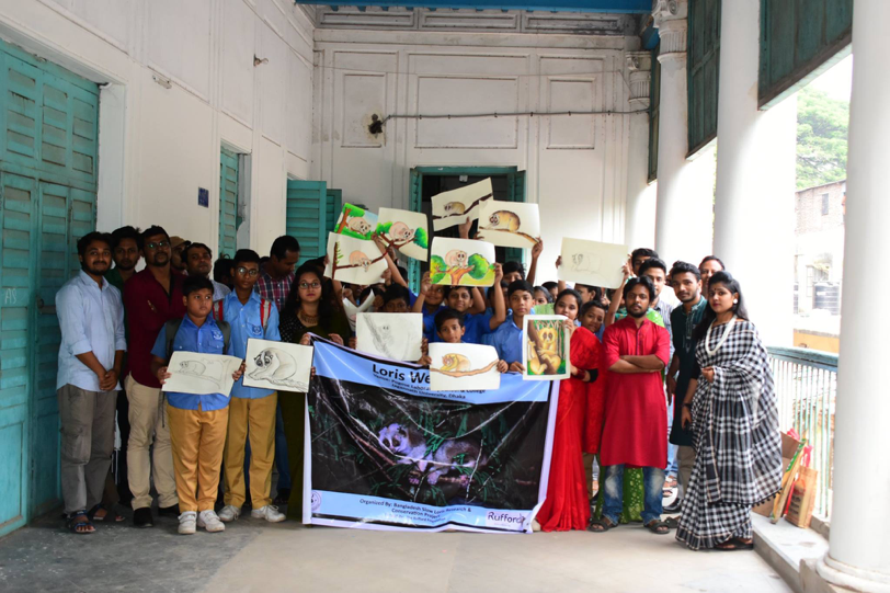 We also arranged an art competition among the school student on the occasion of Loris week-2017, where we introduced the little children with the slow lories and also told them about the amusing facts about Bengal Slow Loris. On that program some of my faculty lecturers were present. They judged the drawings and gave prizes to the winner. I was very much astonished to see their amusing drawings. Each and every drawing was very nice. Nobody could tell that, they had drawn the slow lorises for the first time. The little children were very eager to see the slow loris into the wild. I promised them I will take them to the wild and show the sleeping balls in the nature. You can watch the activities here!