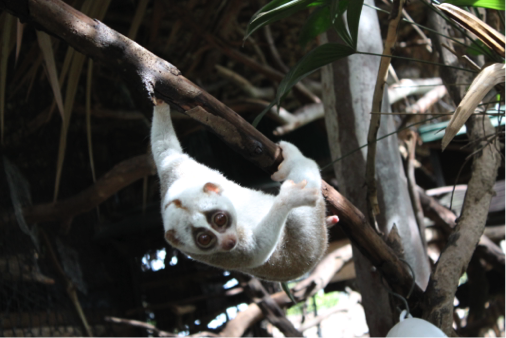 During my MSc in Primate Conservation at Oxford Brookes University, I decided to further look at the effects of gum-based enrichment on promoting natural postures in rescued slow lorises. After multiple meeting with Anna Nekaris and 8 months of planning, I finally made the long 30-hour journey from Chicago to Bangkok. Nancy Gibson, the founder of Love Wildlife Foundation in Thailand graciously allowed me to study the three species of slow lorises she helps to manage at a rescue center in Bang Phra, Thailand.