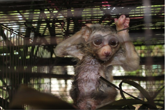 Bengal slow loris upon arrival at a rescue center in Thailand.