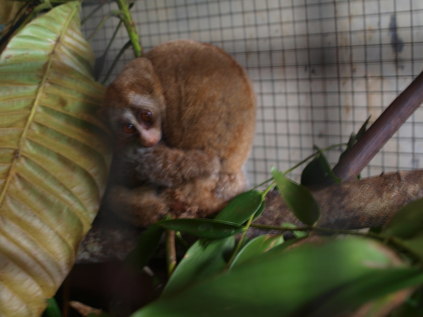 Aconk also suggested that on cold nights or nights with full moons to place more foliage in the enclosures so that the lorises can hide in it. This is something we have observed in the wild as well. A very interesting idea he came up with was to put the water for drinking in flowers instead of drinking cups. Lorises drink water from flowers normally and it is defiantly worth trying to see if it will help these cuties drink more, especially as they are given their vitamins dissolved in water. It was wonderful that he was using his knowledge of wild loris behaviour and thinking of ways in which it could be applied to captive lorises.