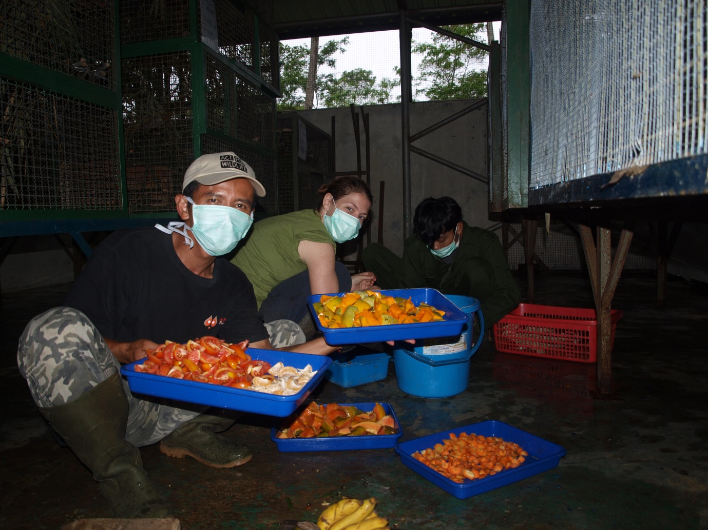 Seeing lorises up close like we did at the centre is a far cry from the 20m distance we normally adhere when performing observations. For all of us it was a very good learning experience seeing the lorises up close and personal. Additionally, we all helped with the animal husbandry. For the trackers it was the first time to prepare food, feed animals and clean enclosures. For Aconk the highlight of the stay at Cikananga was feeding the lorises.